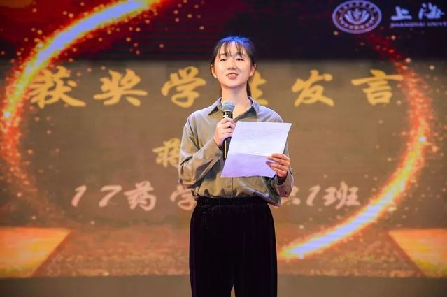“建国奖”获奖者蒋沈苗同学代表获奖同学发言, 她首先代表全体获奖者向瞿建国先生表示衷心的感谢,建国奖学金不仅给同学们提供了经济上的帮助,更收获瞿先生对于健康学子的关怀和关爱,她表示与建国奖牵手,将会带着感恩之心,使荣誉变成进步的阶梯,以瞿先生为榜样,秉承建国奖精神,潜心学习、刻苦钻研。