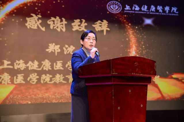 郑书记发表了热情洋溢的感谢致辞,她指出:首先对建国社会公益基金会支持学校、资助学生表示感谢。捐资助学是社会成功人士、有识之士对医疗卫生健康人才培养的高度关注,提增了学校师生教师育人,为国成才的信心和决心。第二、对瞿建国先生的捐赠高度评价,瞿先生的捐资助学是乐于奉献的价值体现,对学校“立德树人,教书育人”文明校园建设具有很大的推进作用。第三、习近平总书记说:新时代是年轻人的时代,当代青年要把中华民族伟大复兴的历史责任担在肩上,她希望在座的获奖者和全校学生能够忠于祖国,不负时代,为实现自身的梦想,开启新的历程。