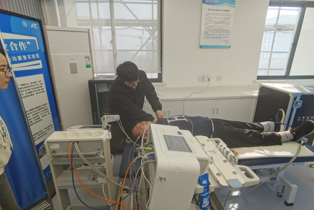 校友工作办公室副主任、校友会秘书长、教育发展基金会秘书长王红陪同参观了学校康复实验教学中心老年康复实验室、康复生物力学实验室、老年智能居家样板房,来宾们分别体验了骨密度检测、内脏脂肪检测。