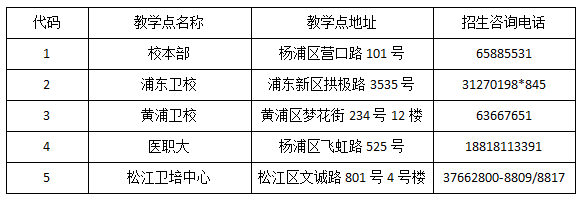 注:1.本表中 “上课地点”栏中的数字为我校各个教学点代码,如数字1,该专业的上课地点为营口路101号,考生可根据各自的意愿进行选择;