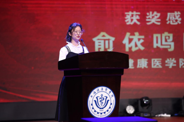 药学院俞依鸣同学代表受助学生发言——《写给妈妈的一封信》,满含深情的表达对生活和学习的热爱、对慈善事业的热忱和医学事业的憧憬,她表示一定不会不辜负学校、爱心企业家和父母的希望,立志不仅要学有所成,而且竭力全力要从一名“唯爱天使”的受助者成为“唯爱天使”的捐赠者,让“厚德至善,健行康民”的校训精神和“因为有您 爱在传递”的唯爱精神发扬光大。