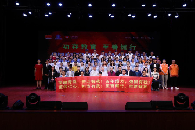 百洋医药集团上海办事处经理范军代表唯爱天使基金爱心企业家为同学们上了一堂人生励志哲理课,勉励同学们以成功医学科学家为榜样,坚定走好“人才成长的必经之路——拼命、坚持”,希望同学们要认识感恩的价值,祝愿同学们的未来不负梦想。