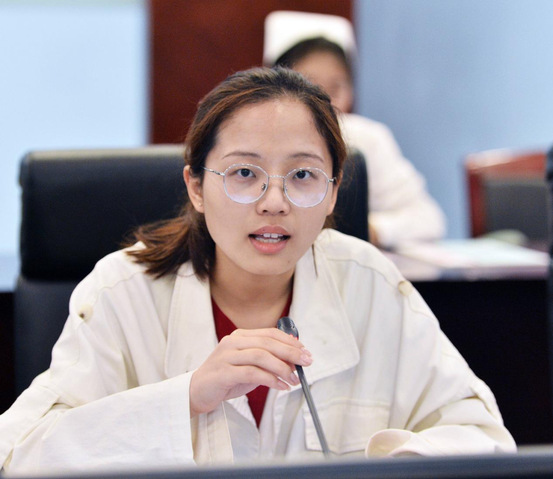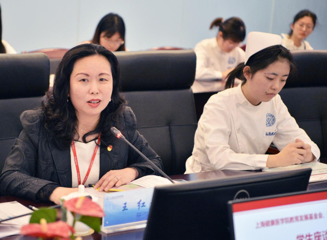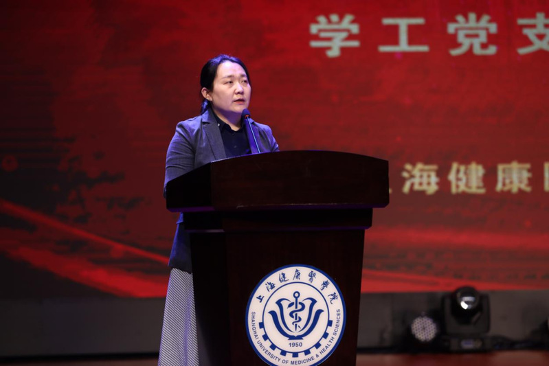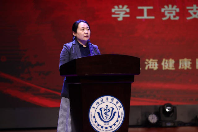 上海健康医学院学工党支部书记吕晓丽介绍了“以培养‘六有’新时代医学人才”为目的,通过党员老师结对唯爱天使基金奖助学生,帮助学生发现自己的价值,传递爱和温暖,要从一名追光者成为引领他人的斗志精神的灯塔——支部品牌项目。