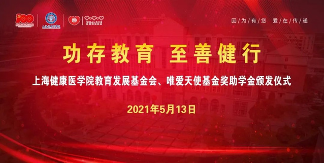 2021年5月13日,上海健康医学院教育发展基金会、唯爱天使基金奖助学金颁发仪式在上海健康医学院浦东校区400人报告厅隆重举行。上海市慈善基金会副理事长施南昌;唯爱天使基金发起人、维众创业投资集团(中国)有限公司董事局主席余蔚等多位爱心企业家;上海健康医学院副校长沈国芳等师生近三百余人参加会议。
