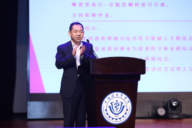 沈国芳副校长首先代表学校和教育发展基金会热烈欢迎与会嘉宾,并对他们长期以来助力我校医学生的成长成才表示崇高的敬意和衷心的感谢!他表示:在礼赞建党百年之际,“功存教育,至善健行”这一共同的目标让我们相聚在一起;“矢志为党育人”,培养优秀的品德高尚的医护人才,服务国家扶贫战略,助力健康中国战略的信念必将激励我们持之以恒,历久弥新。他寄语同学们:倍加珍惜党和国家的关心,常怀感恩之心;学习在抗击疫情的战役中,勇于奉献驰援武汉校友前辈们弘毅担当的精神,以见义勇为、医者仁心李丰耀同辈为榜样,凝聚奋进力量;事业靠本领成就,理想靠奋斗实现,让青春在为祖国、为人民、为民族、为人类的奉献中焕发出更加绚丽的光彩!以实际行动回馈社会,做爱心的传递者,在奉 献中实现人生的更大价值!最后他宣布张雨露等58位同学获得2020年度上海健康医学院教育发展基金会、唯爱天使基金奖助学金。