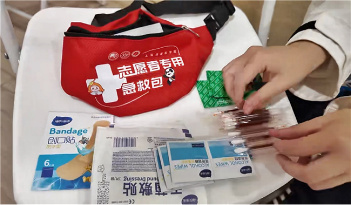 来自上海健康医学院护理与健康管理学院的大三学生庚窈竹,便是其中一员——连续两届站上爱国卫生与健康促进岗位的她,随身总是揣着一个“宝贝”,那是一个装满棉签、消毒棉片、创可贴、医用敷贴、生理盐水等物品的小小急救包,这方巴掌大的物件,是作为医学生的她来到进博会的“专业标配”。