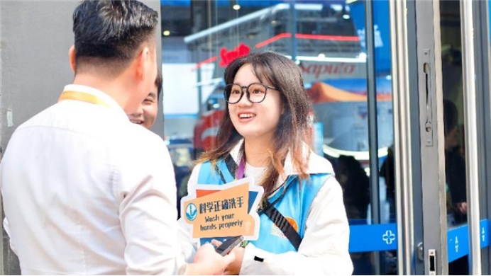 正式服务中,她们展现了出众的应急处理能力与双语沟通技巧。她们身着蓝马甲、手持宣传牌、腰背急救包,开展健康科普、规劝违规吸烟等志愿服务,以专业的服务、昂扬的精神迎接八方来客。“我印象最深的是,在劝阻一名外籍展商前往指定吸引点时,对方认真聆听爱国卫生与健康促进岗志愿者的工作内容和劝阻要求,在全力配合的同时,还夸赞了我的笑容十分有感染力。他的鼓励也更加鼓舞了我的工作热情。”郑欣骅说,要继续和小伙伴们一起,以最好的精神风貌践行“爱卫健促,健康进博”的理念,在进博会的舞台上彰显当代中国青年的风采。