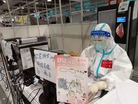 强忍着担心和不舍,把5岁的女儿交给家人,穿上“战袍”奔赴一线,随队到达上海最大的方舱医院—世博方舱医院,有条不紊地为患者提供护理工作,并且融入了八段锦等中医特色。闲暇时,她和孩子们做游戏、讲绘本…凌晨时,查资料、巡视…